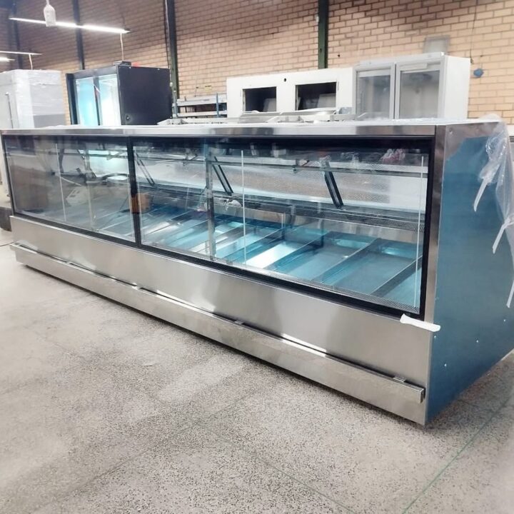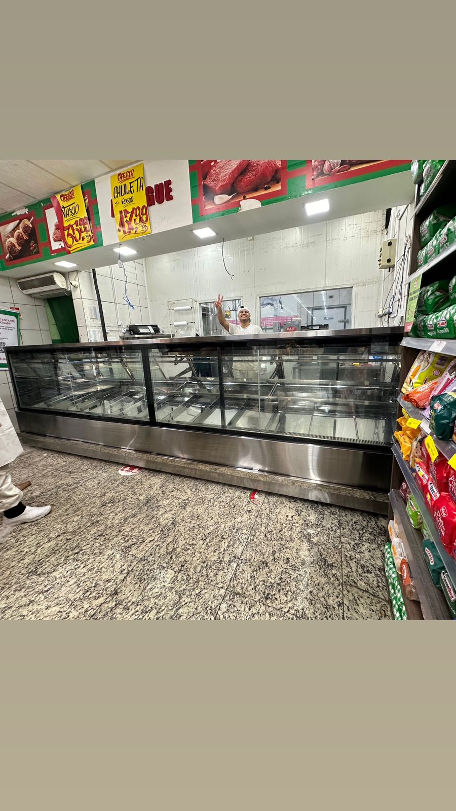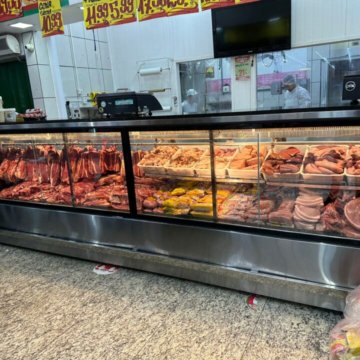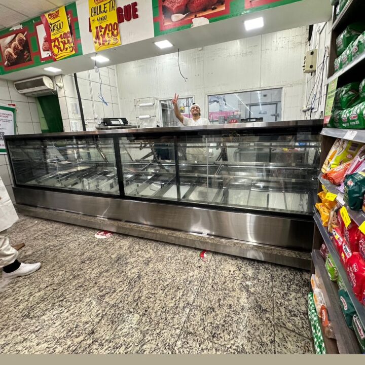 Essa renovação de açougue contou com uma nova configuração executada em inox premium. Uma nova linha homogênea de exposição e atendimento personalizados com ampla exposição dos produtos cárneos ofertados aos clientes.