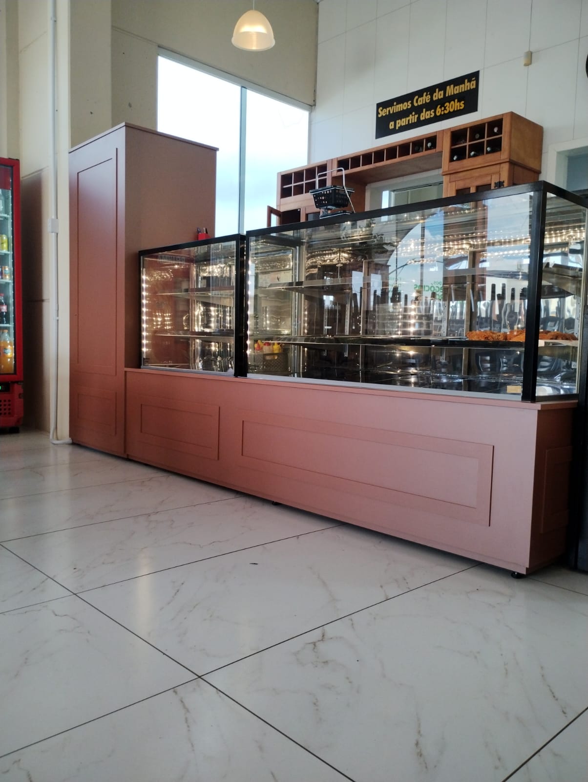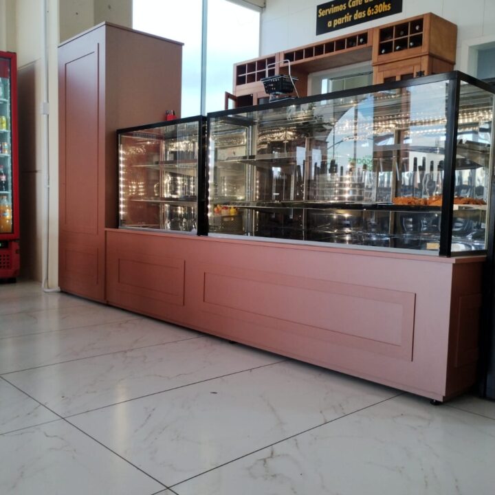 Novo balcão vitrine de exposição com vidros de total transparência fornecem ao cliente o conforto visual desejado para a escolha do seu produto bem como instiga para um consumo adicional.