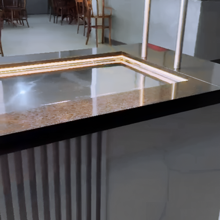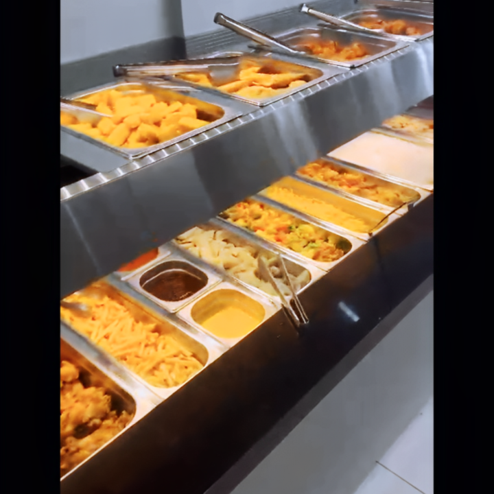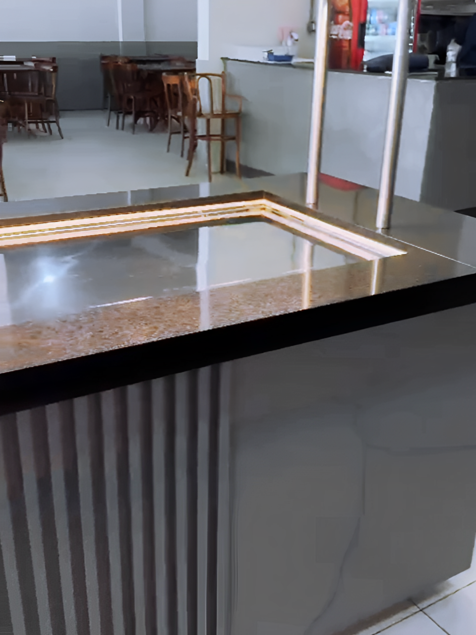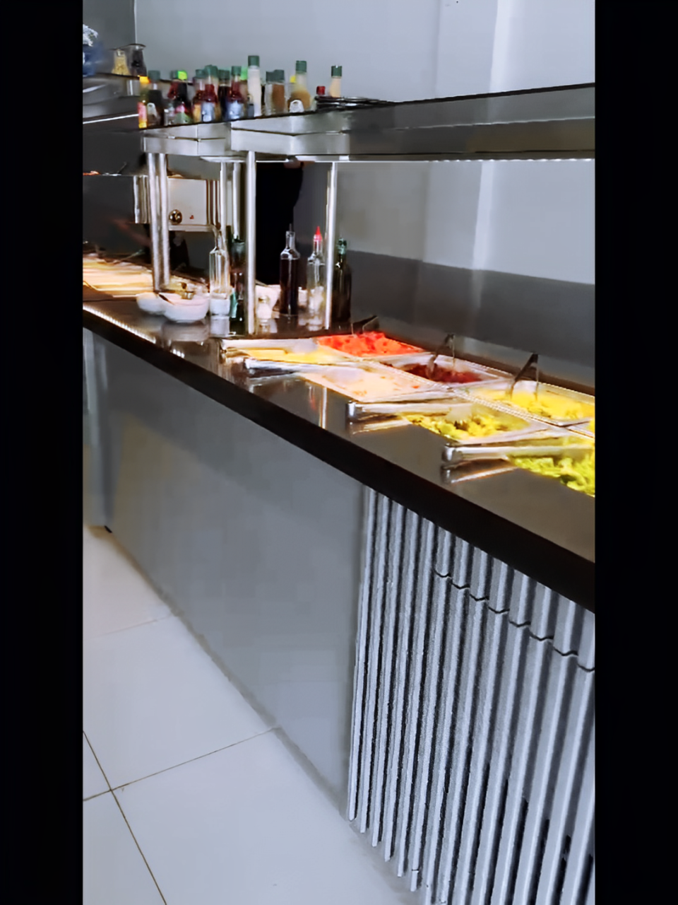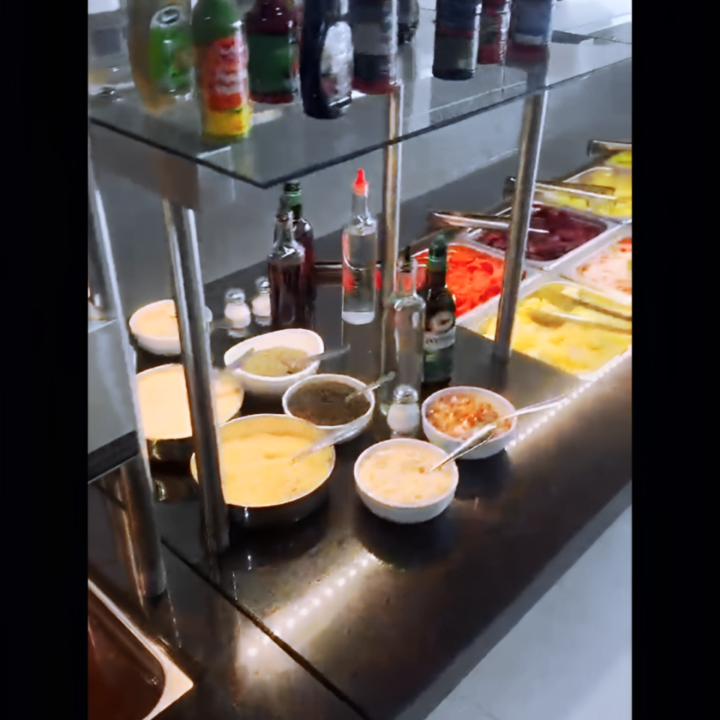 Buffet completo quente e frio, balcão e ardósia, inox e vidro. Sua marcenaria perfeita completa o conjunto. Uma ótima experiência aos clientes