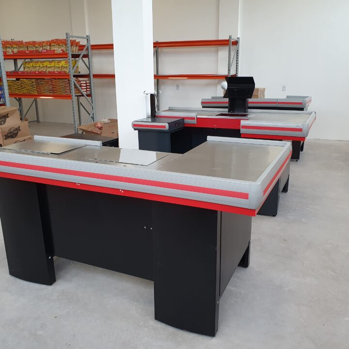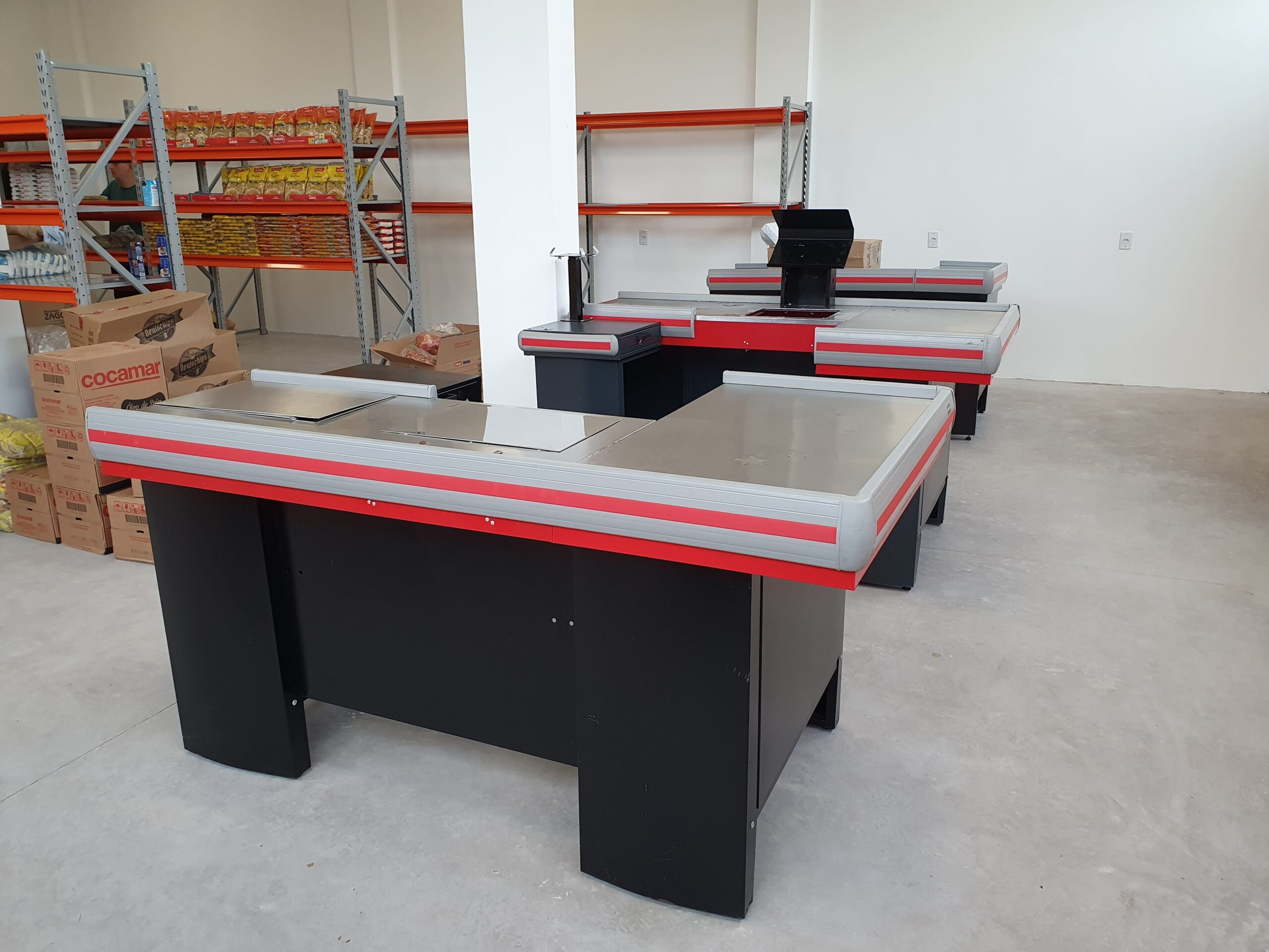 Projeto de Mercado Completo com Vitrines (Quente/Fria e Confeitaria), Balcões, Expositores Refrigerados, Prateleiras Mini Pallet, Caixa Check-Out entre outros.