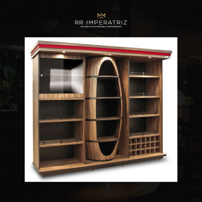 Expositor para vinhos e bebidas Finas Tipo Adega com Barril