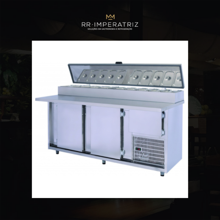 O Balcão Condimentador é um apoio indispensável em cozinhas de hotéis, restaurantes, bares, clubes, lanchonetes, mercados, mercearias e outros estabelecimentos que necessitem de refrigeração à temperaturas de +2ºc à +8ºc para alimentos não congelados, como frios, laticínios, bebidas, condimentos para o preparo de pizza e outros.