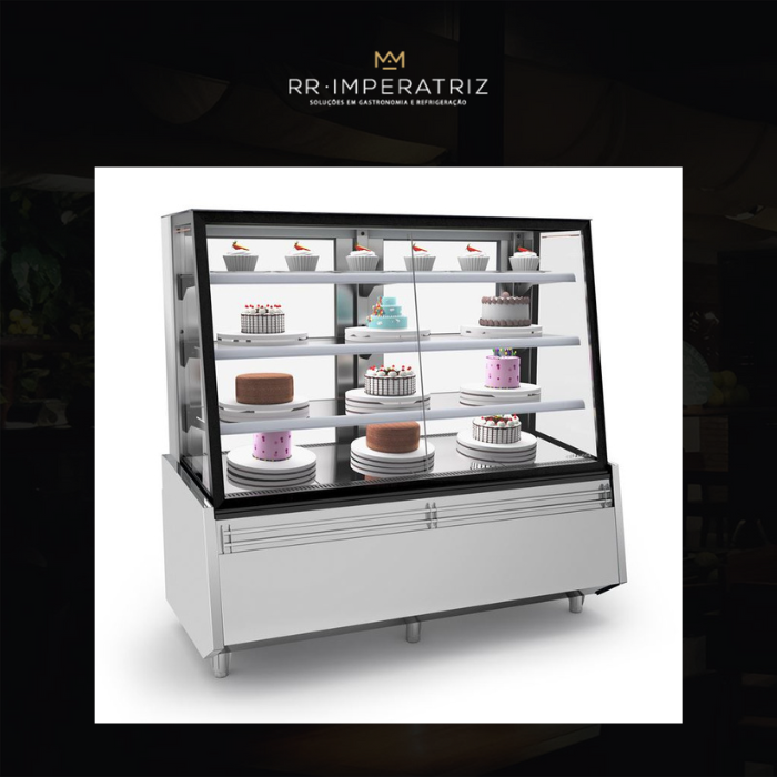 Ideal para lojas, cafeterias, padarias, mercados e outros estabelecimentos, perfeito para preservação e exposição com embalagens, de bebidas, bolos, tortas, frios, e laticínios.