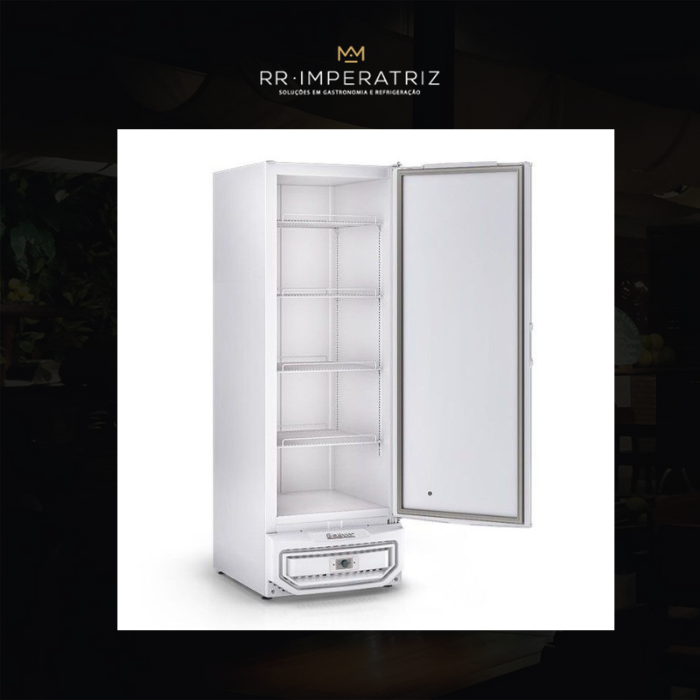 Ideal para diversas atividades comerciais, o conservador / refrigerador vertical com porta cega GPC-57 é tripla ação, ideal para a conservação de gelo e produtos congelados ou refrigeração de produtos, sua temperatura pode variar para congelados (diversos) entre -18° a -22°, gelo e massas entre -10° a -15° e para resfriados entre 0° a 7°, a refrigeração é estática com serpentina, controlada através de termostato eletrônico tripla ação, possui degelo manual, tem 4 níveis de prateleiras aramadas reguláveis e inclináveis, porta cega com fechamento automático e pés reguláveis. Na temperatura de resfriados ocorre a formação de gotículas de água no interior do produto.