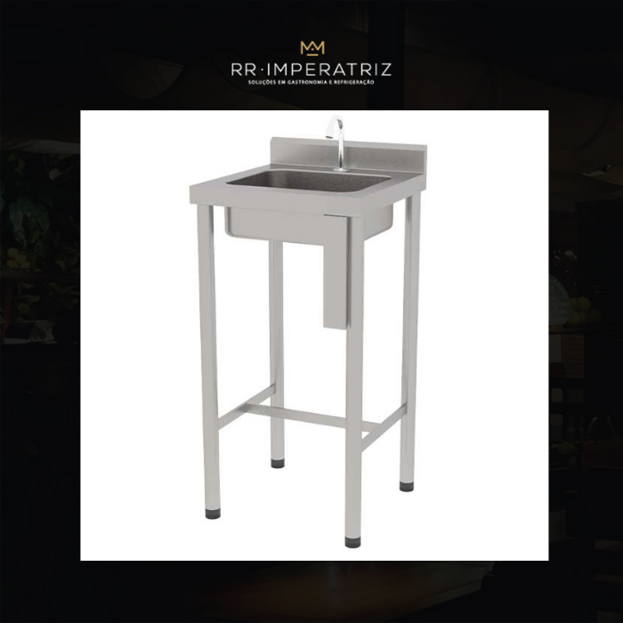 A Pia de Assepsia com Pedestal é feita totalmente em aço inoxidável escovado 430 (opcional inox 304), de alta qualidade, altamente durável e resistente, com material higiênico.